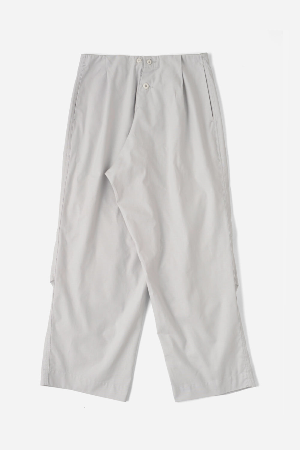 The "Knee Pleated Baggy Pants" are based on baggy pants and feature variable knee pleats, creating a minimalist yet beautiful silhouette with three-dimensional curved legs. They combine the functionality and details of military and workwear, reinterpreting elements from different categories.